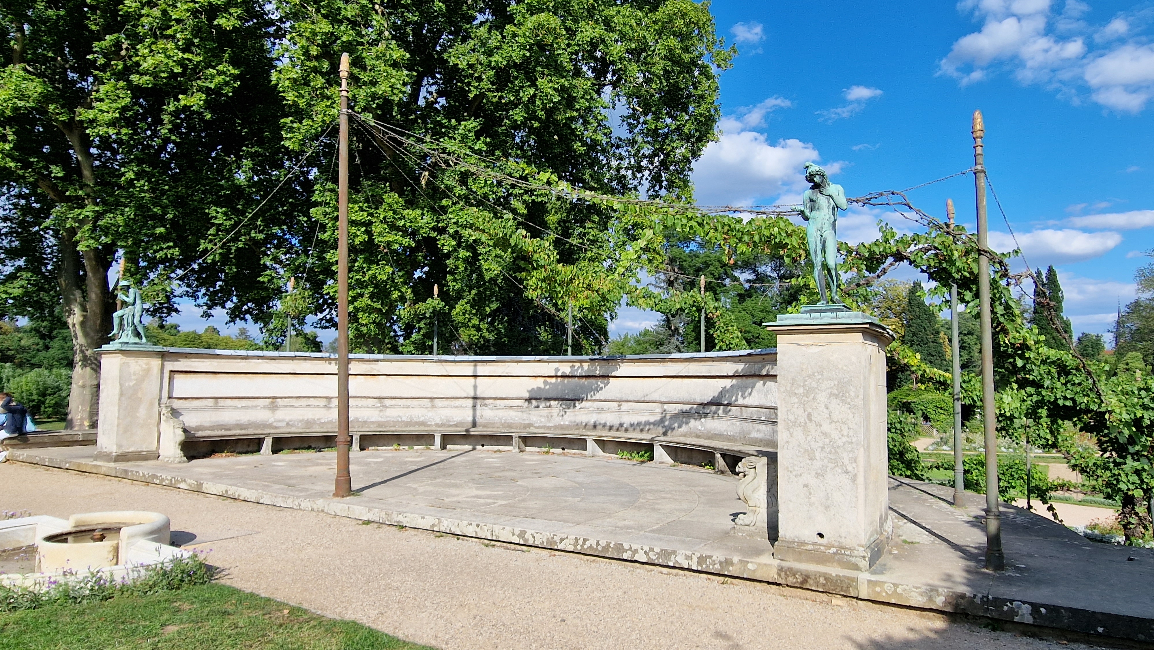 Die Römische Bank, oder Exedra, ein wichtiges Ausstattungsstück der Schlossgärten in der Zeit Peter Joseph Lennés und Karl Friedrich Schinkels. Anmerkungen zu ihrer Bedeutung und Wiederherstellung Die Bau- und Gartenkultur der ersten Hälfte des 19. Jahrhunderts ist in Preußen ganz wesentlich durch Karl Friedrich Schinkel und Peter Joseph Lenné geprägt. Beide haben sich oft ergänzt und in vielen ihrer Schöpfungen finden wir das prägende Motiv der Römischen Bank, oder Exedra, nach dem antiken Vorbild. Halbrunde Bänke, die wir nicht nur in den Pleasuregrounds , sondern auch in den weitläufigen Lennéschen Parkanlagen, sogar in der offenen Landschaft, wie am Ruinenberg in Potsdam, vorfinden. Alle diese Exedren gehen im Grunde auf halbrunde marmorne Bänke an der Gräberstraße in Pompeji zurück, Bänke, die dann später zum Vorbild auch in Berlin und Potsdam wurden.